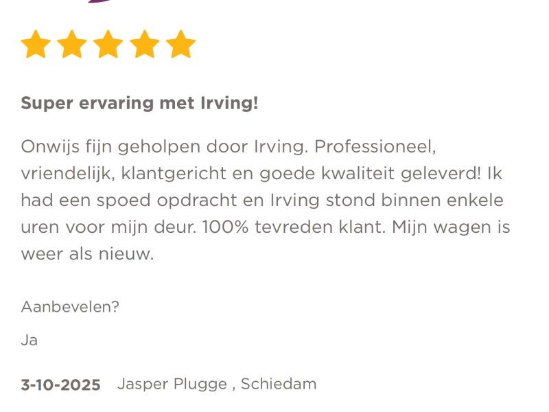 Boek vandaag nog en stap weer in een schone, frisse auto zonder hondenlucht of rondslingerende haren.